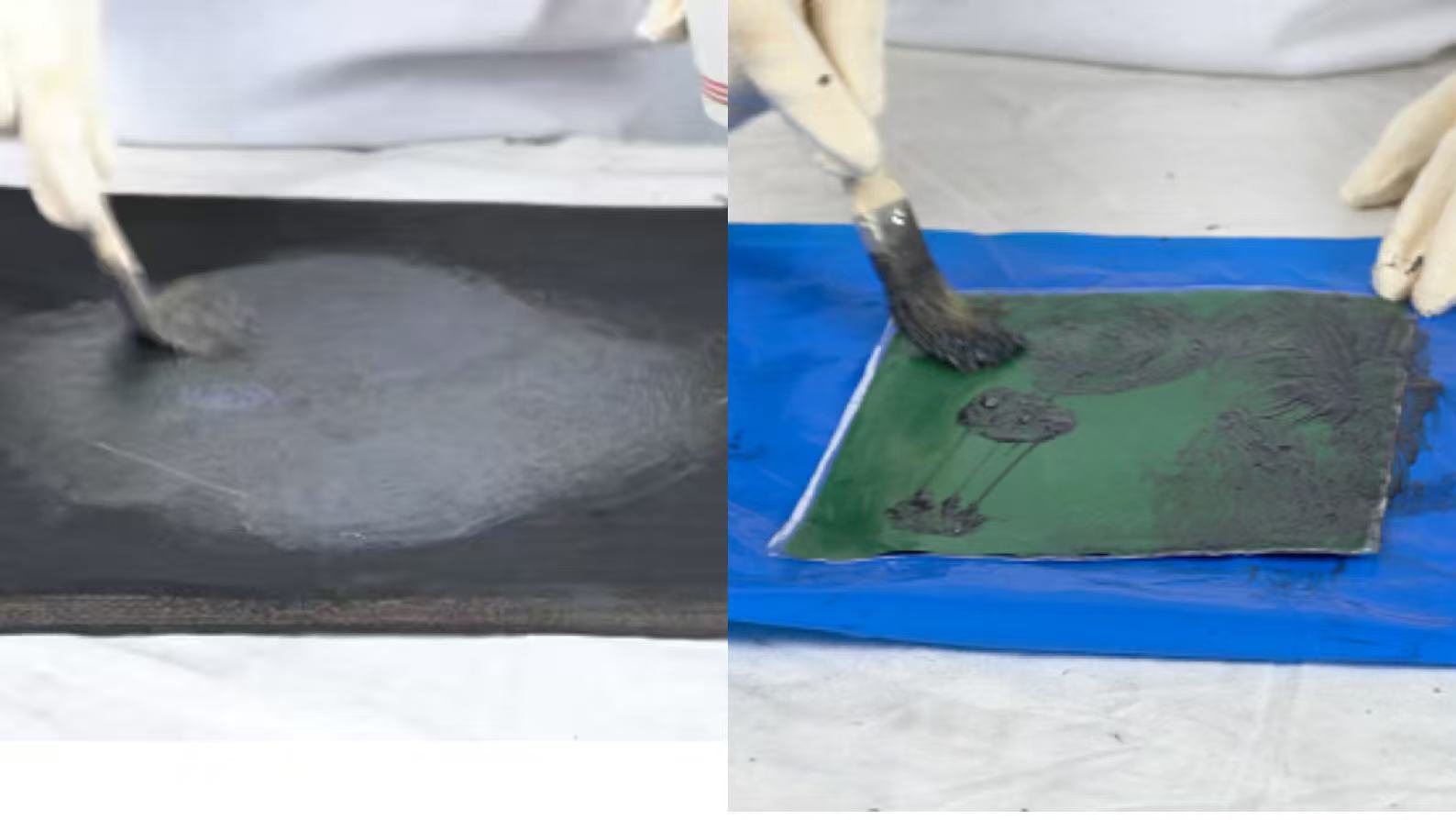 在处理好的划伤部位均匀涂刷两遍 CS 2000 硫化剂,补片背面涂刷一遍。