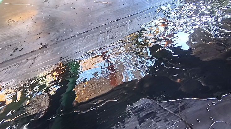 专用工具加热V310热补颗粒胶,使其充分融化、保持良好流动性,均匀涂抹在破损处